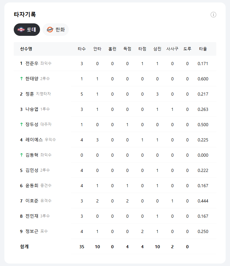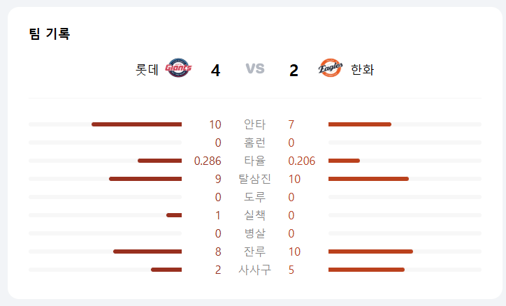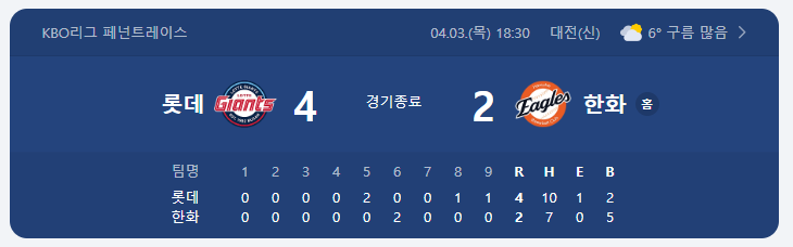 - 📍 결과: 롯데 4 – 2 한화