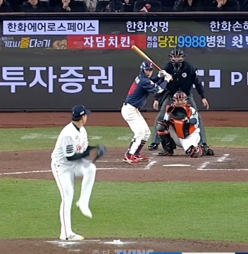8회말: 한화는 채은성의 볼넷, 플로리엘의 안타로 1사 1, 2루 찬스를 만들고 노시환의 희생플라이로 1점 추격했지만, 거기까지였다.