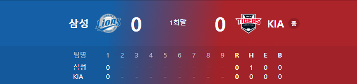 | 1회 | 김지찬 중전 안타로 출루하지만 병살타로 이닝 종료. KIA는 위즈덤 2루타로 1점 선취. (1-0 KIA) |